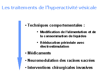 Le diagramme ci-dessous indique les différentes possibilités de traitement pour l'hyperactivité vésicale.